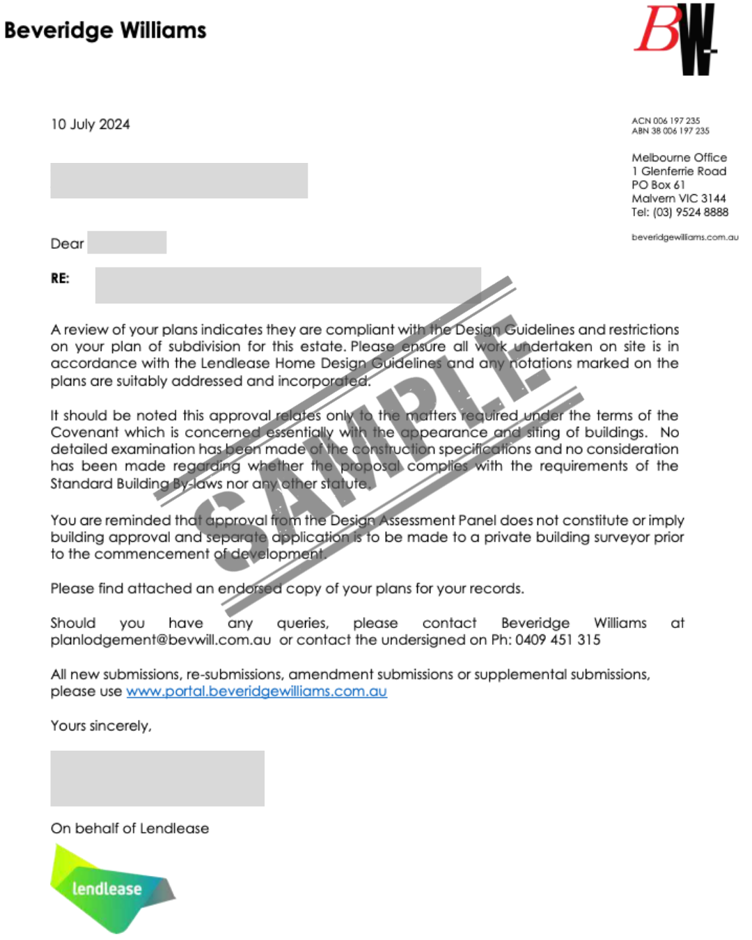 7. Once approved, you get a written covenant approval document to use with your council or certifier.