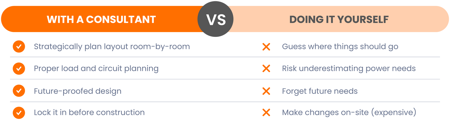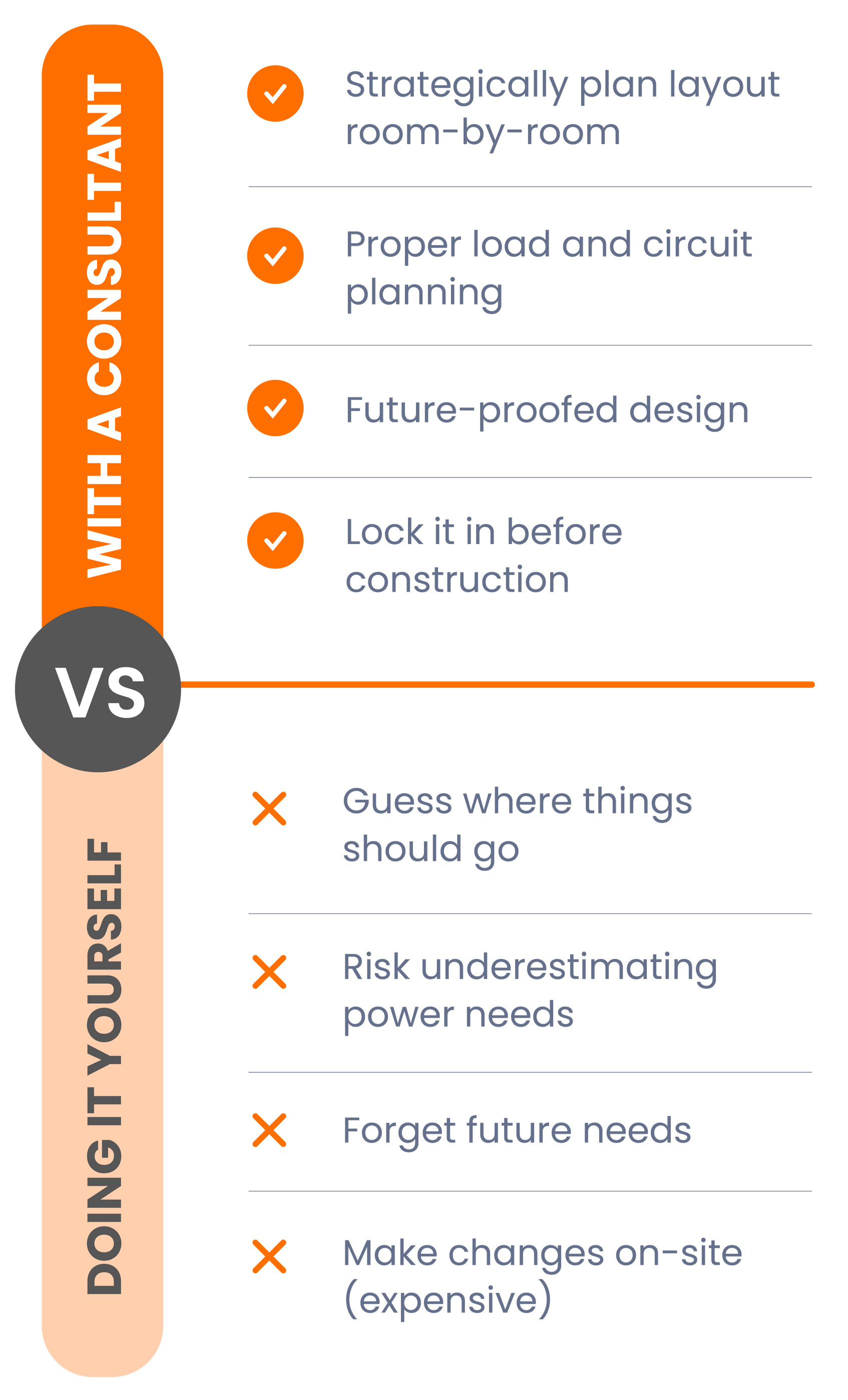You can try to plan it yourself — but electrical layouts are one of the most commonly regretted parts of a build.
