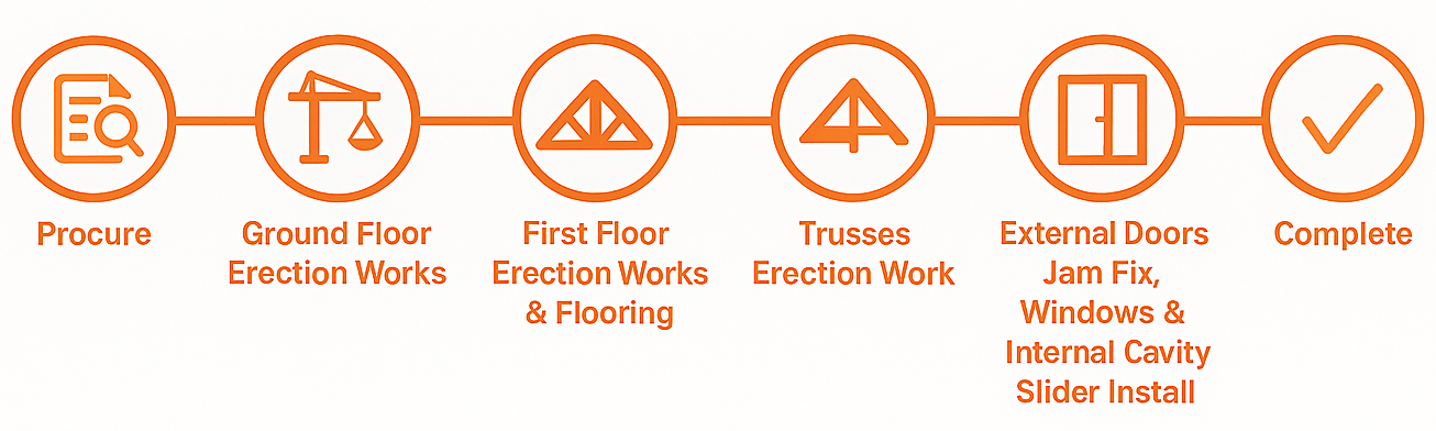 Procure This is where you get quotes and book the right tradesperson (usually a carpenter) to do the frame and structure work for your home.