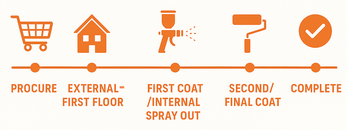 Painters are usually engaged at the final stage of the build and complete their work in multiple stages, including external painting, internal spray-out (first coat), and the second/final coat.