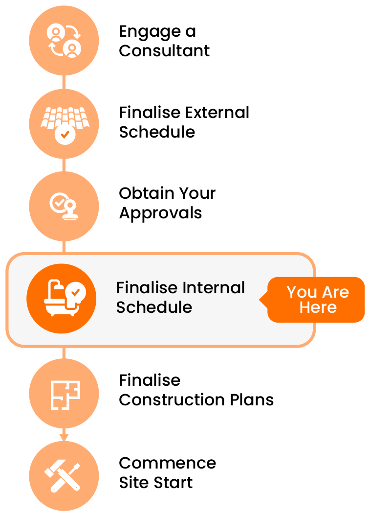 Finalising this schedule with your Selections Consultant ensures your selections are practical, coordinated, and clearly documented — ready for your building designer or architect to act on, and finalise your construction drawings.