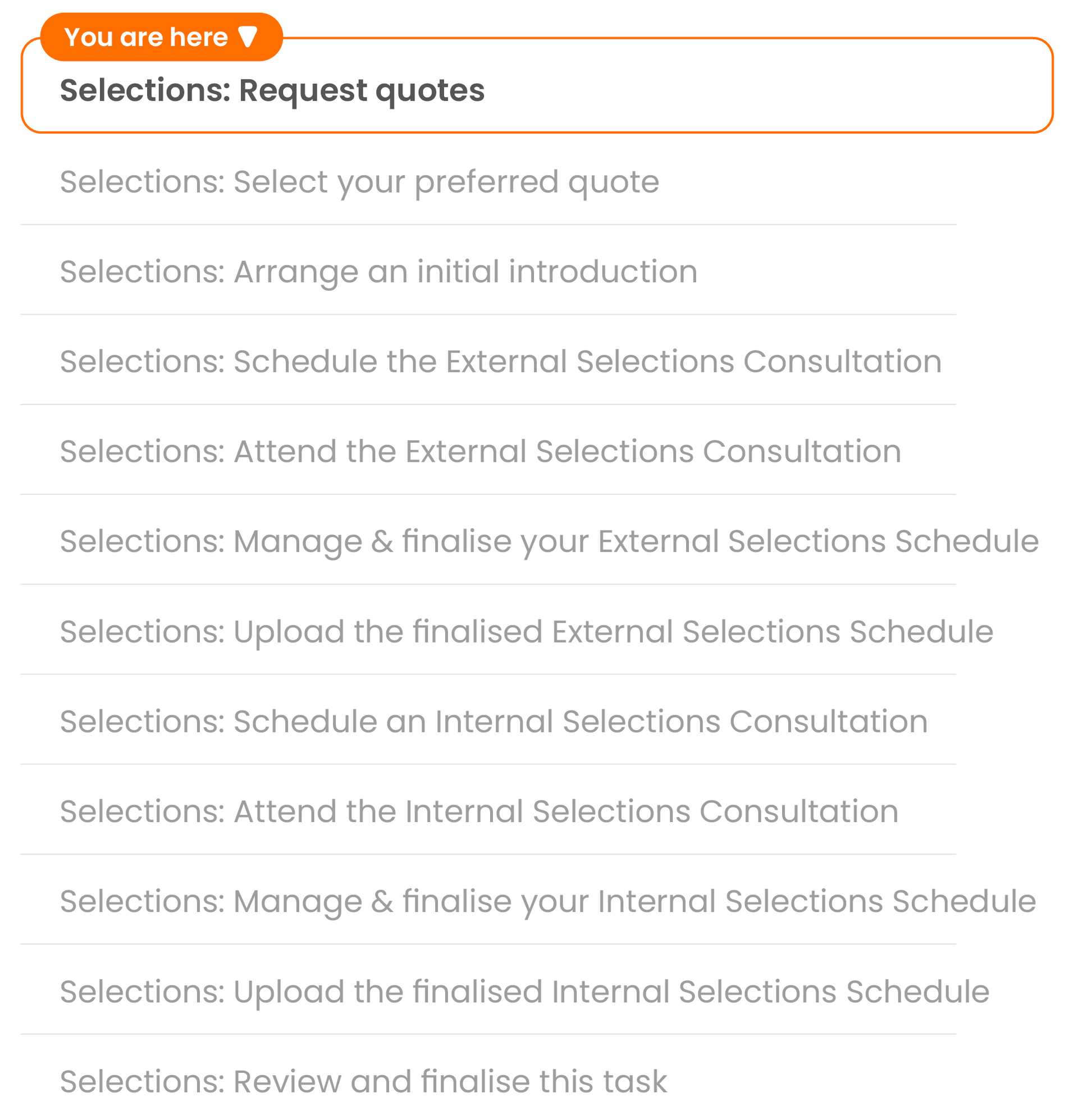 To request quotes from a Selections Consultant for full schedule completion, you’ll need:
