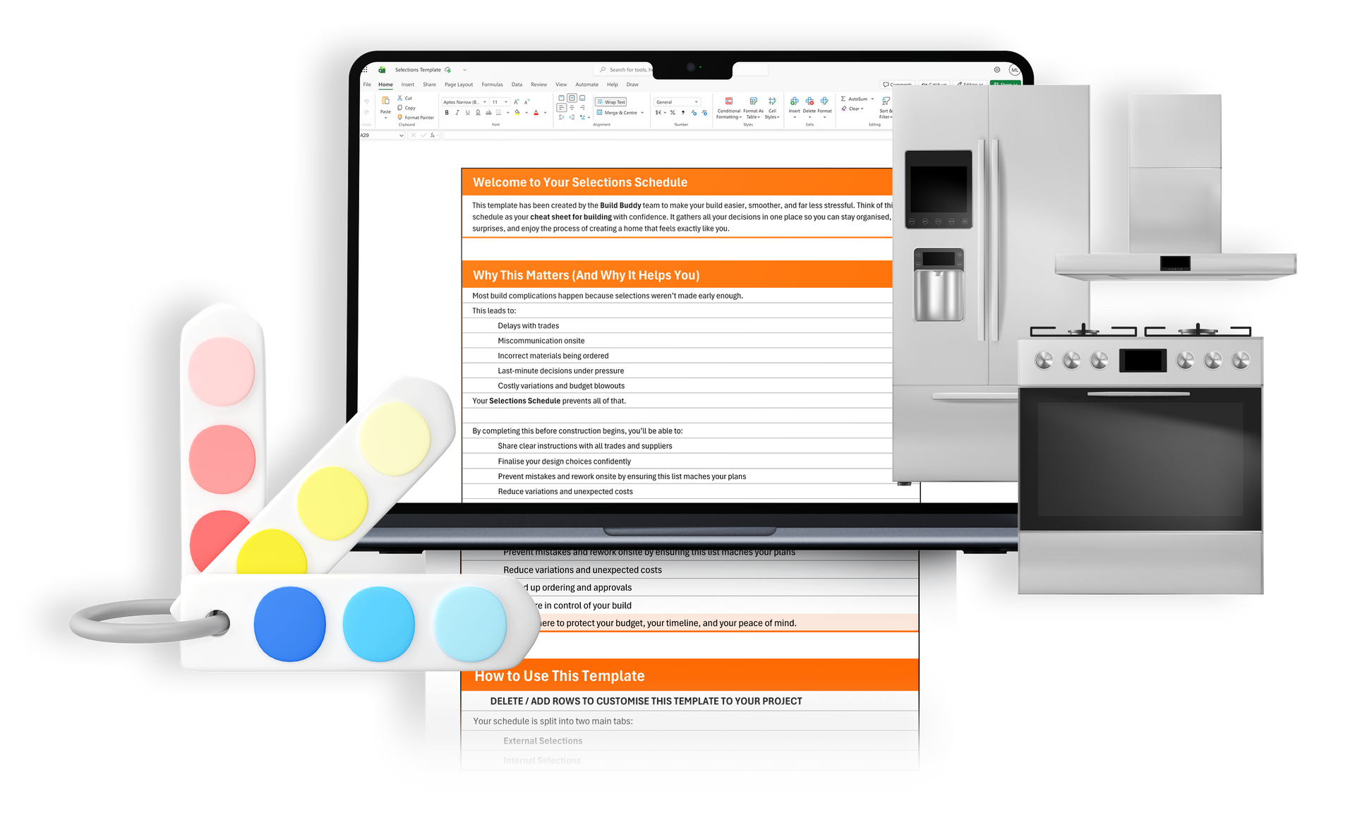 You can choose to DIY this stage if you’re confident, or you can use Build Buddy’s Selections pathways to guide you. Many owner builders prefer the pathway option because it keeps things organised and makes sure nothing is missed.