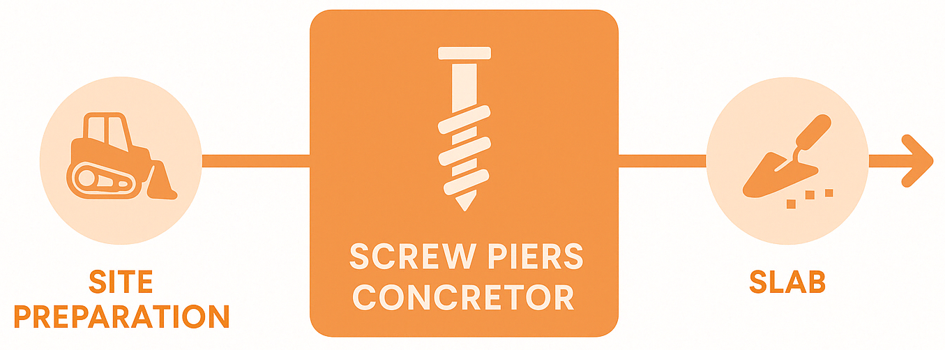 A Screw Piers Concretor is a qualified concreter or subcontractor who installs screw pier foundations — deep, steel piers that are mechanically screwed into the ground to support your structure. Screw piers are commonly used on reactive or sloped sites where extra foundation stability is needed.