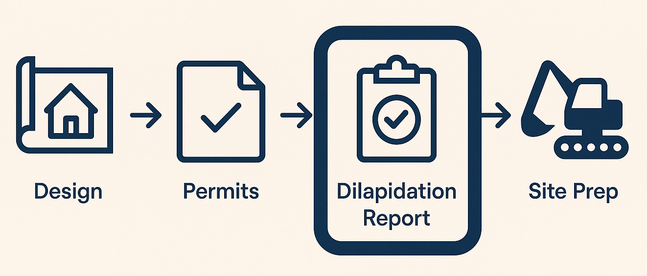 - Compile a Dilapidation Report that details the pre-construction condition of these assets