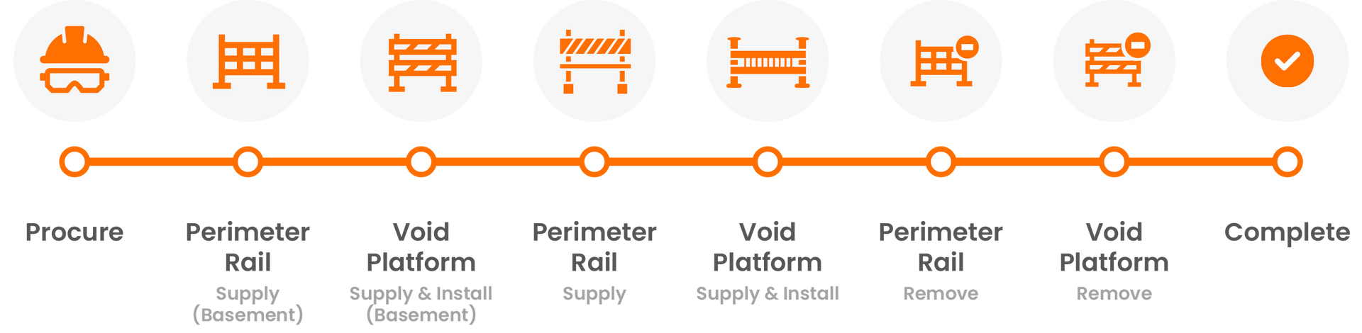 | Void Platform – Supply & Install | Set up a platform to cover voids (openings) on upper floors — usually stair or lift shafts — to prevent falls. |