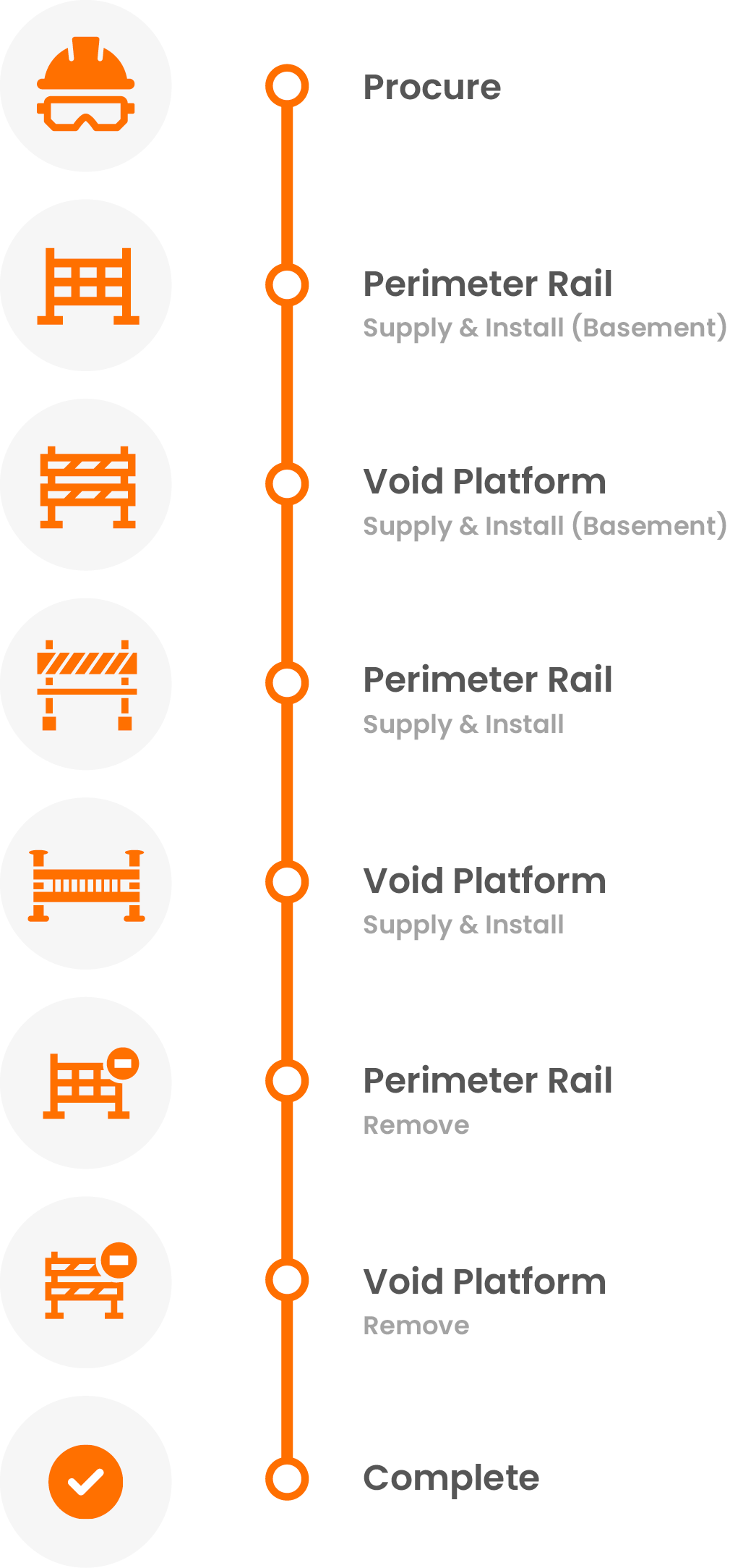 - Supply and install perimeter edge protection (e.g. around floor slabs, voids, or roof edges)