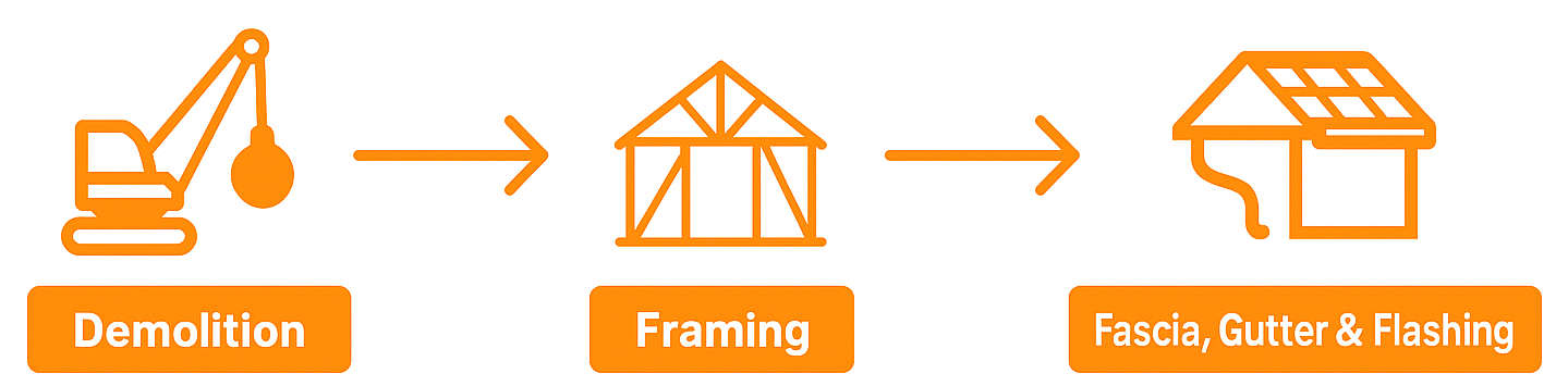 This work happens just before roof sheets or tiles go on and often involves coordination with the roof plumber or main roof installer.