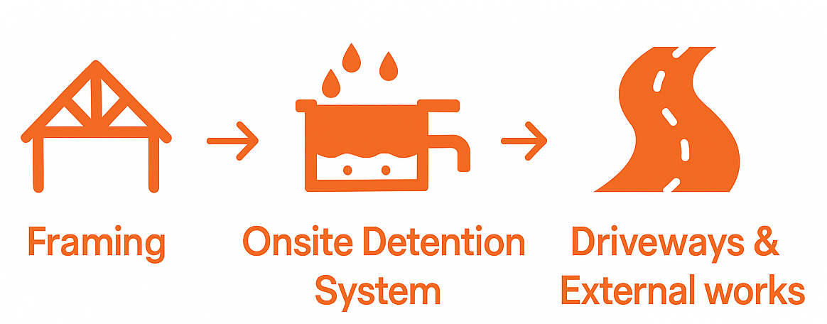 Get your OSD system engineered and approved early — some councils won't issue your Occupation Certificate (OC) without the detention system inspected and signed off.