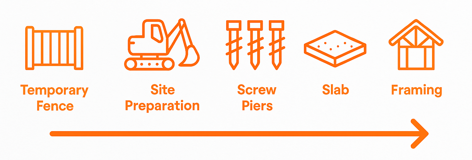 Always install temporary fencing before site prep begins — council inspectors can issue fines for unsecured construction sites.