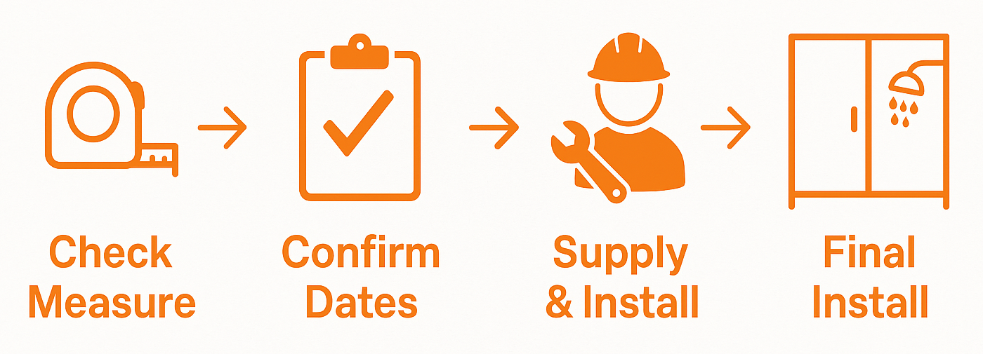 • Finalise sizes and specifications for robes and shower screens based on actual room dimensions