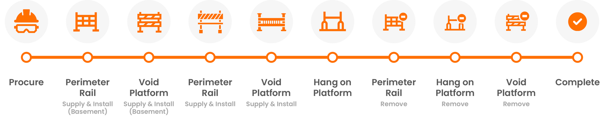 | Void Platform – Supply & Install | Set up a platform to cover voids (openings) on upper floors — usually stair or lift shafts — to prevent falls. |