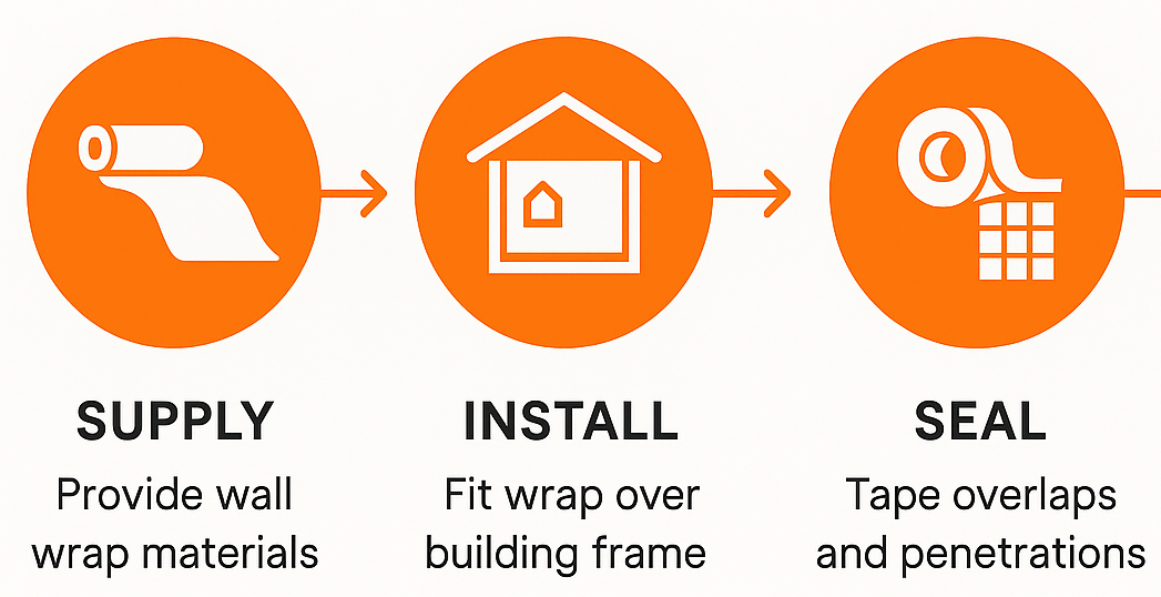 - Supply wall wrap materials appropriate for your build (breathable or vapour barrier wraps)
