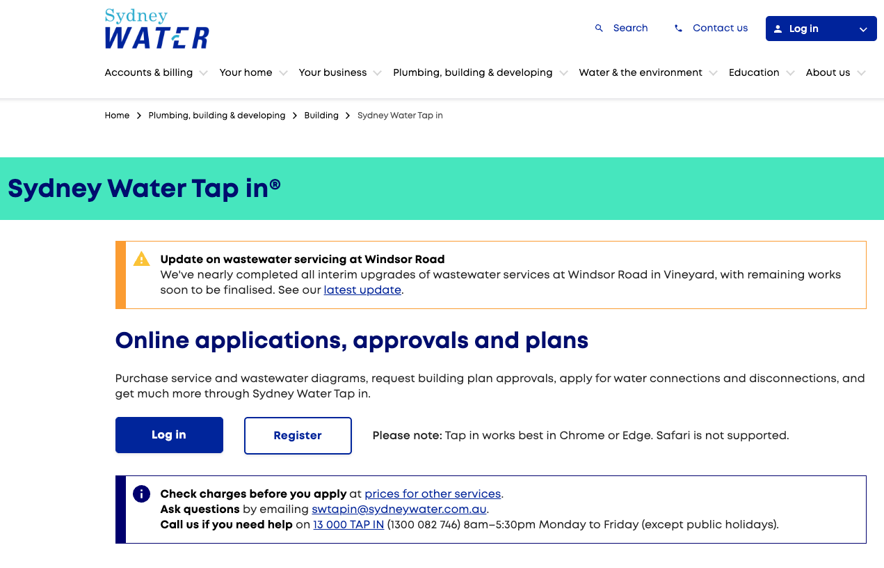 1. Check if approval is needed. Visit: https://www.sydneywater.com.au/plumbing-building-developing/building/sydney-water-tap-in.html